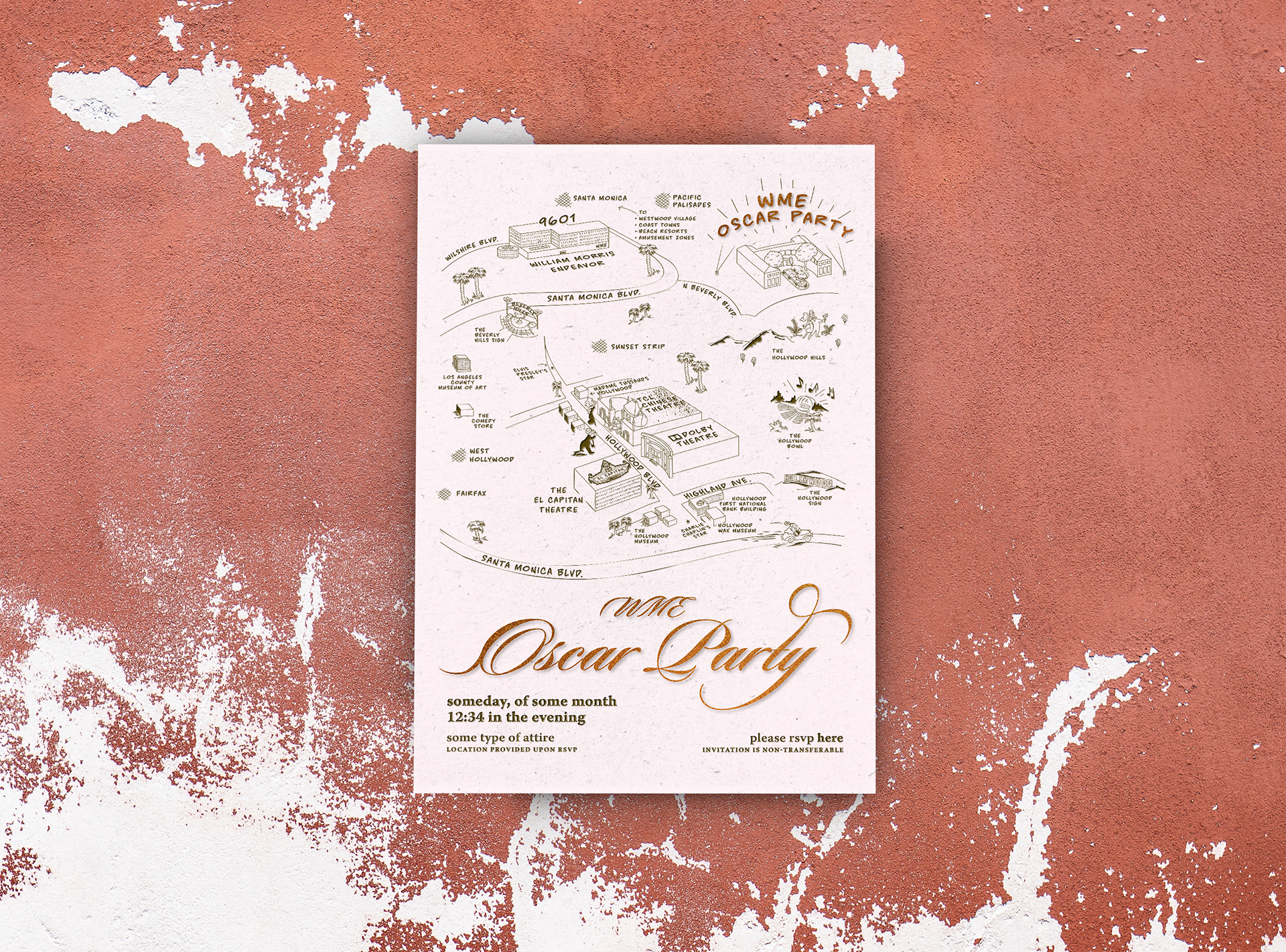 Led creative direction of bespoke event branding from ideation and development to execution for the 2024 WME Oscar Party.
